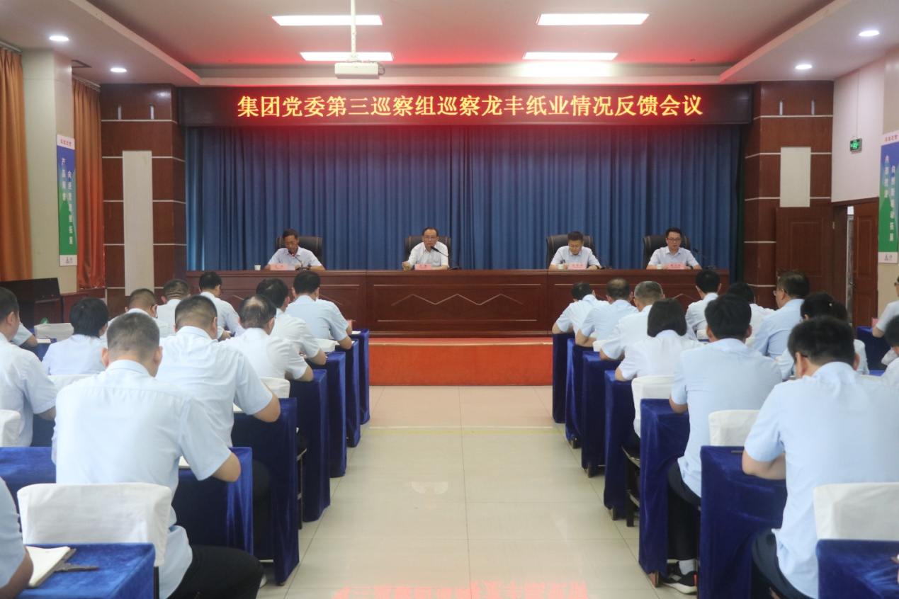 按照集團(tuán)黨委2024年第一輪巡察工作安排,7月10日,集團(tuán)黨委第三巡察組大河控股分組組織召開(kāi)巡察龍豐紙業(yè)情況反饋會(huì),大河控股黨委書(shū)記、董事長(zhǎng),集團(tuán)黨委第三巡察組大河控股巡察分組組長(zhǎng)王根,大河控股總經(jīng)理、黨委副書(shū)記張國(guó)璞,集團(tuán)黨委第三巡察組大河控股巡察分組荊小超出席會(huì)議。龍豐紙業(yè)班子成員、中層干部及職工代表50余人參加會(huì)議。